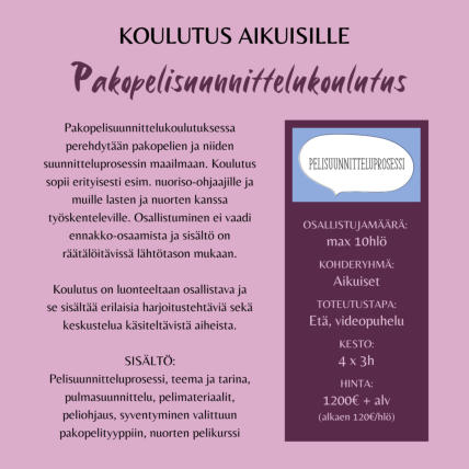 tai pakopelikurssin ohjaamista suunnitteleville työryhmille.